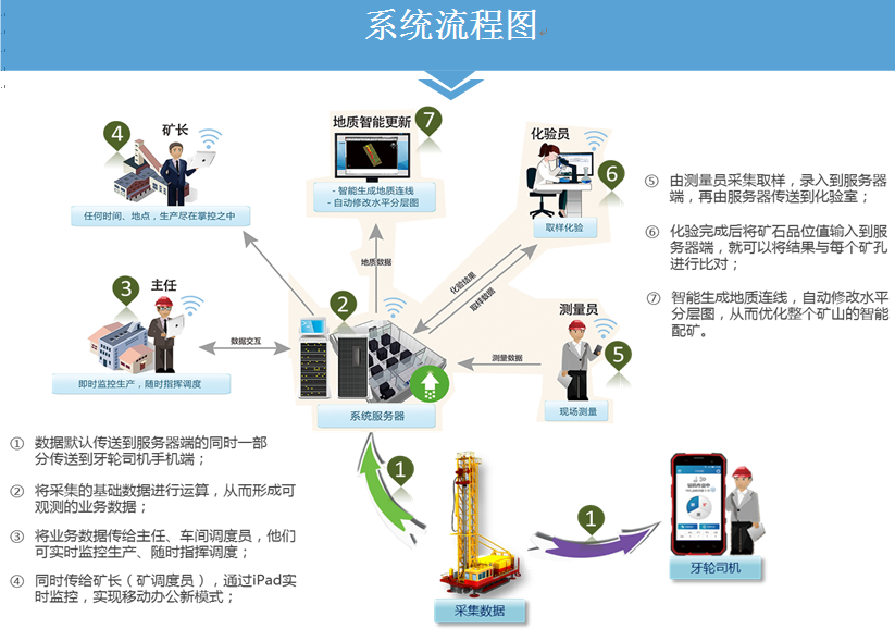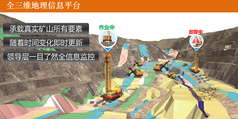 基于“43211”理論的《聚進牙輪生產智能管控系統》以聚進露天三維采礦綜合信息系統為基礎,引進高精度智能測量設備,提高測量精度,數據采集及時準確,極大提高生產工作效率。徹底解決礦山測量人手不足,戶外測量工作量大的頑固難題,極大提高測量數據的單位采集率,建立公司級數據應用交換平臺,支持數據和圖像同時傳輸,地質模型實時更新、資源信息遠程共享,實現過程控制數字化,可使操作者直觀立體地感知生產過程及現場狀況。
