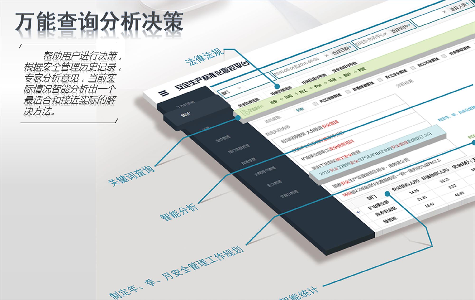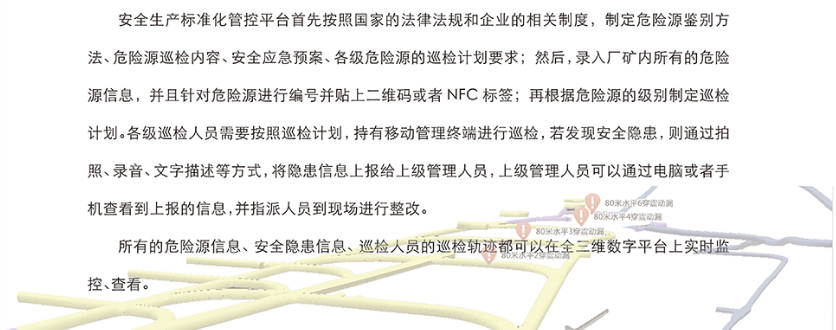 安全生產標準化管控平臺是遼寧聚進科技有限公司智慧企業建設的一個重要部分;是實現業務規范化、過程標準化、管控智能化、績效分析自動化的行業領先的應用平臺系統;該平臺以國家安全法律法規、相關政策為基礎,以企業崗位責任制度為參照,采用B/S應用架構、大型數據倉庫技術、移動終端互聯網開發技術、“仿真三維”數字建模技術、GIS應用技術以及大數據挖掘技術等領先科研成果與技術研發而成,為企業提供自下而上的一線安全管理作業數據。