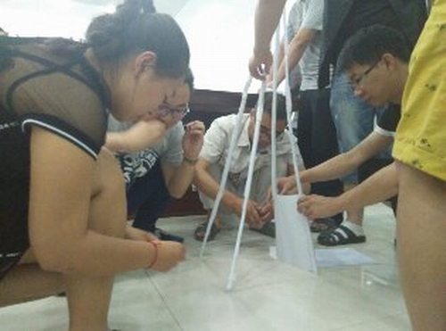 “合力造榙”活動是各個團隊要用有限的資源(A4紙、小膠帶、剪刀等)在規定的時間內,建造一座擁有四個側面堅固且美觀的高塔。以符合要求的塔中最高者為勝。此活動看起來簡單,但對團隊的組織、協調、執行等能力有非常高的要求。是一個非常有趣且有意義的活動。